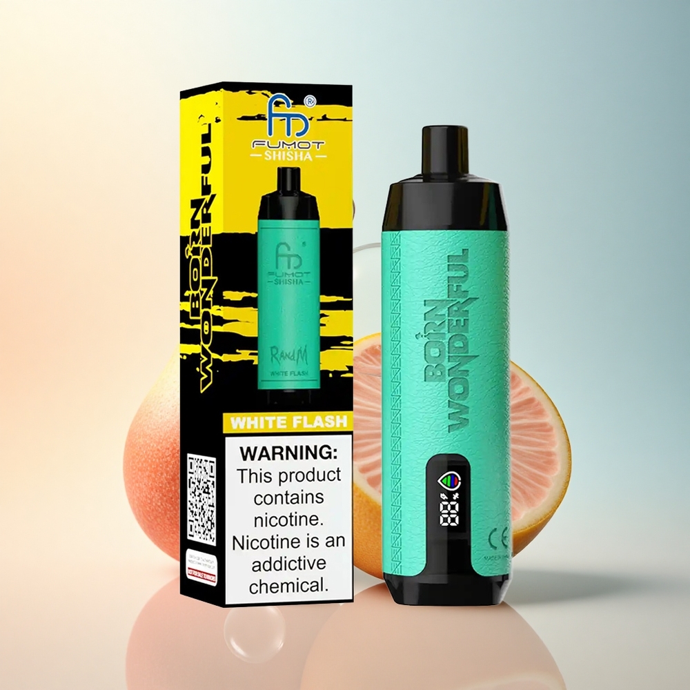 RandM Fumot Shisha 10000 Puffs الفلاش الأبيض – مؤشر LED – 0.5% نيكوتين – 850 مللي أمبير