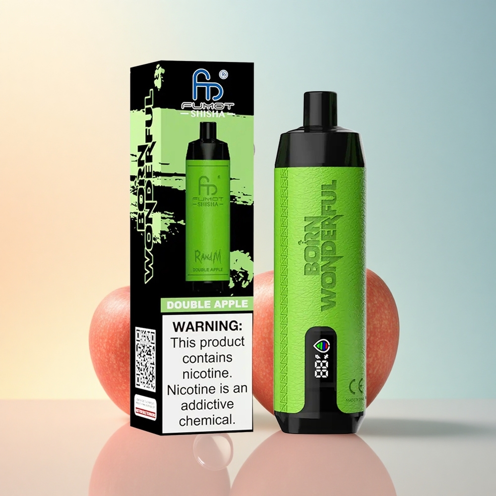 RandM Fumot Shisha 10000 Puffs تفاحة مزدوجة مع 0.5% نيكوتين و 850 مللي أمبير وبطارية