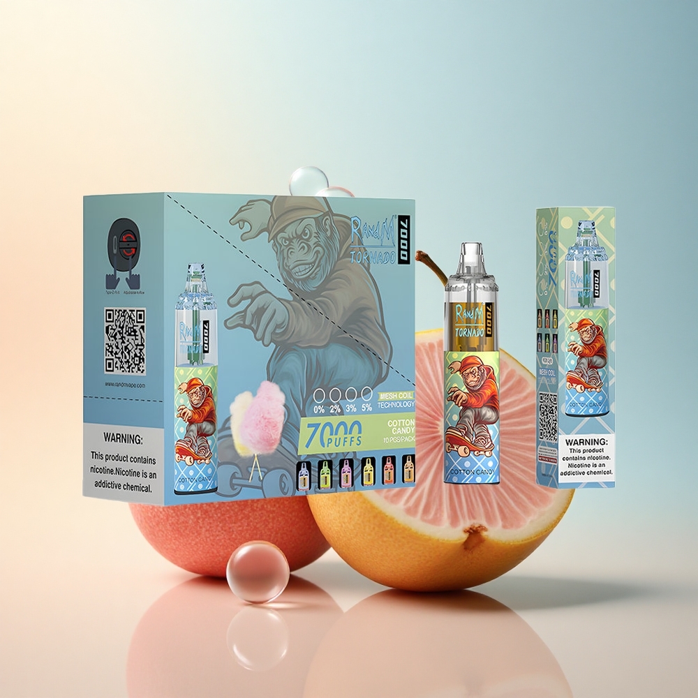 RandM Fumot Tornado 7000 Puffs حلوى القطن 14 مل نوع شبكي 5% نيكوتين