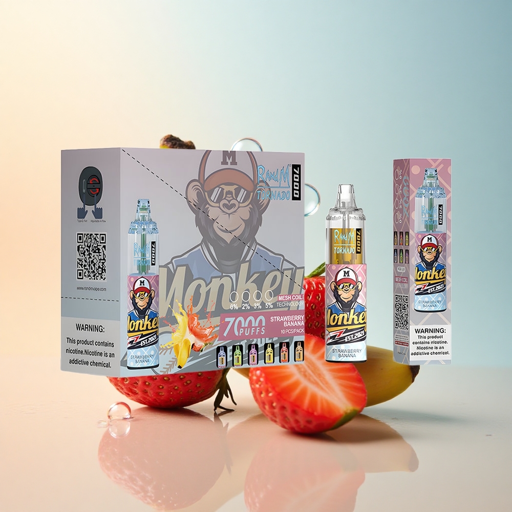 RandM Fumot Tornado 7000 Puffs فراولة موز 5% نيكوتين 850 مللي أمبير ساعة