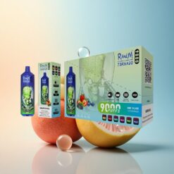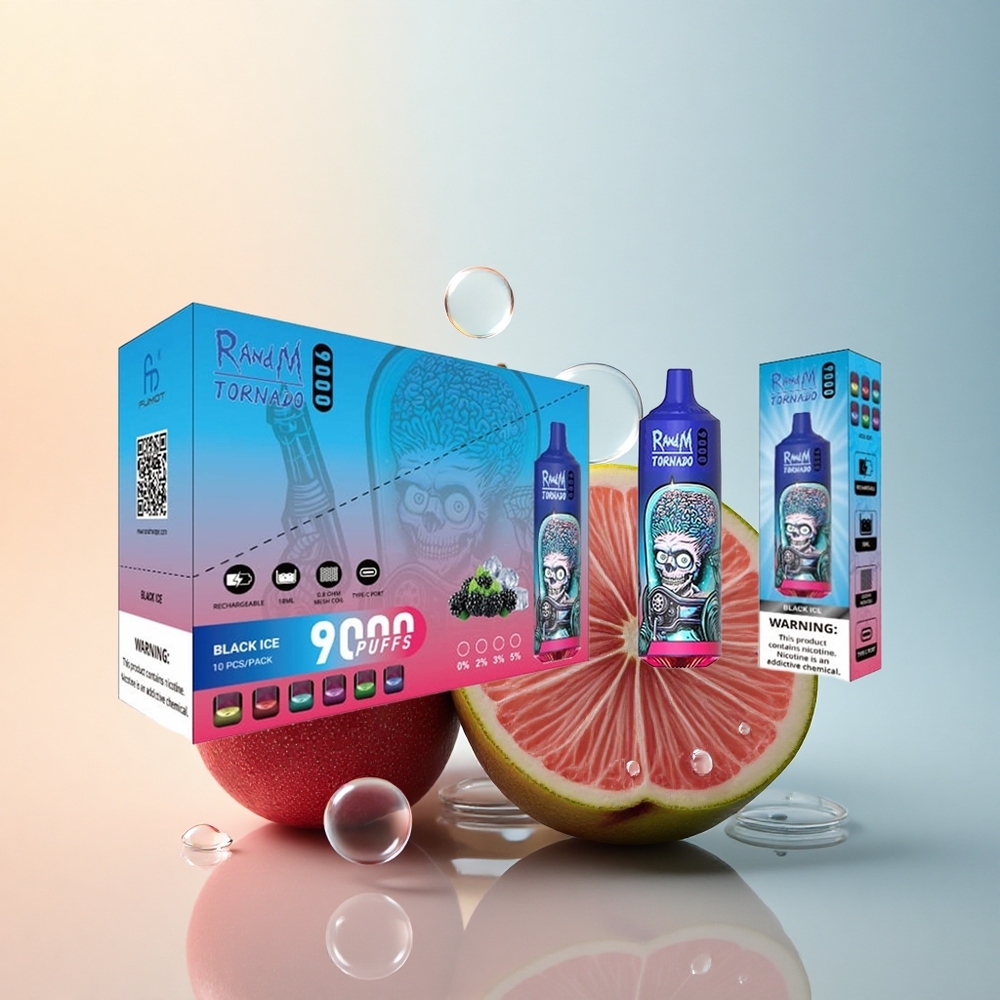 RandM Fumot Tornado 9000 Puffs الجليد الأسود بشاشة RGB ومللي أمبير 850 وسعة 18 مل