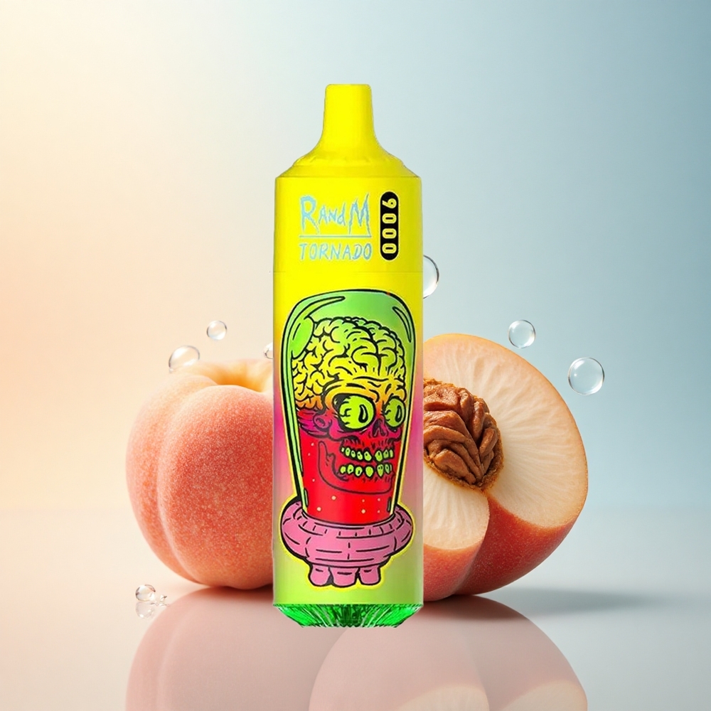 RandM Fumot Tornado 9000 Puffs خوخ صيفي مثلج بشاشة RGB و سعة بطارية 850 مللي أمبير