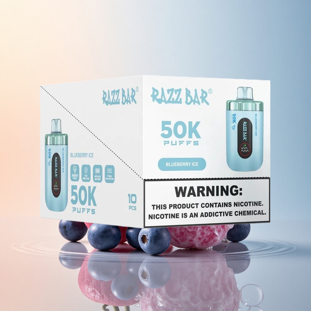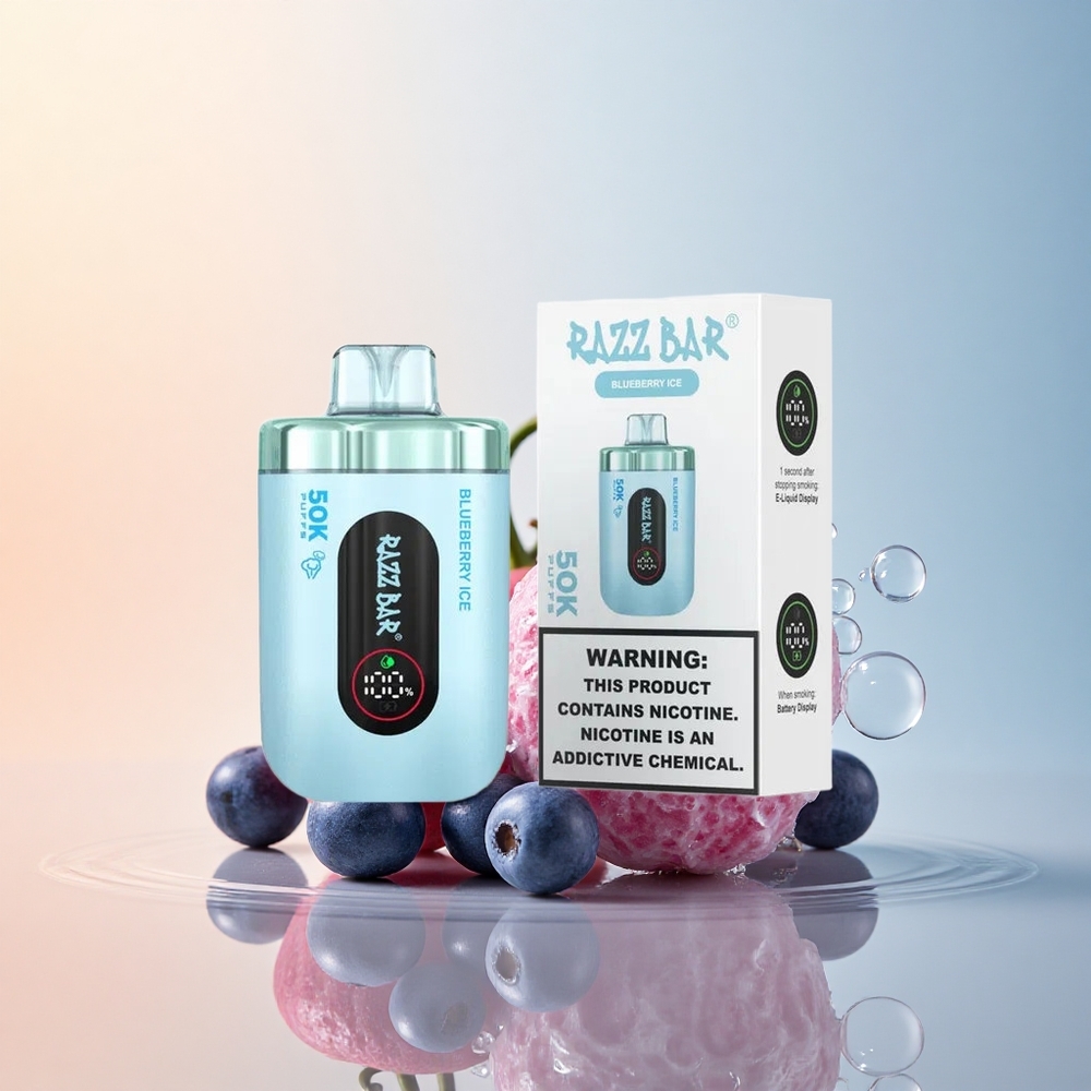 Razz Bar 50K Puffs توت أزرق مثلج بشبكة 1.0 أوم و 650 مللي أمبير