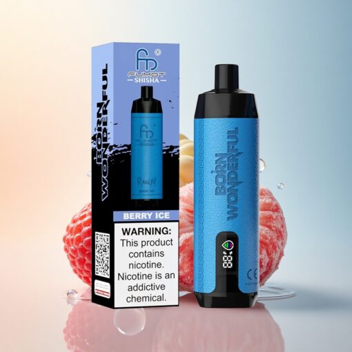 RandM Fumot Shisha 10000 Puffs توت الجليد مع بطارية 850 مللي أمبير ونيكوتين 0.5%