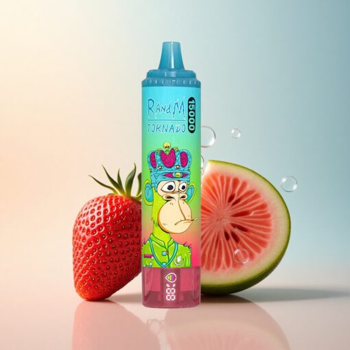 RandM Fumot Tornado 15000 Puffs فراولة بطيخ بشاشة إل سي دي وبطارية ٨٥٠ مللي أمبير