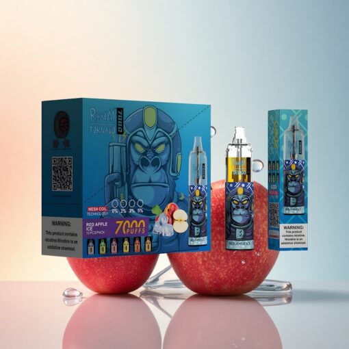 RandM Fumot Tornado 7000 Puffs تفاحة حمراء مثلجة بنسبة 5% نيكوتين و 850 مللي أمبير ساعة
