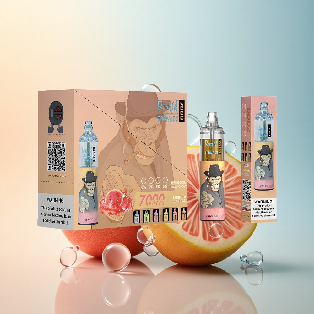 RandM Fumot Tornado 7000 Puffs ثلج منعش بنسبة 5% نيكوتين وشبكة ملف وضوء RGB