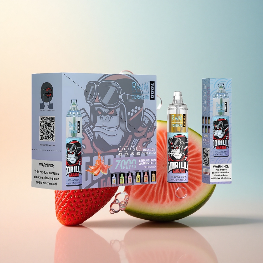 RandM Fumot Tornado 7000 Puffs فراولة بطيخ بشريحة شبكية وبطارية 850 مللي أمبير ومنفذ Type-C