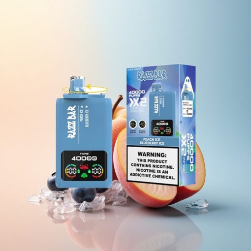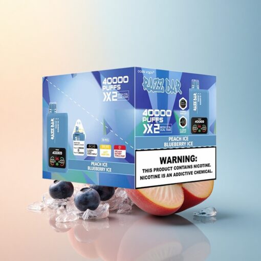 Razz Bar 40000 Puffs خوخ مثلج – توت أزرق مثلج مع شاشة عرض ونسبة نيكوتين 2%