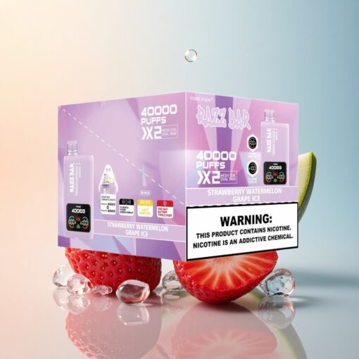 Razz Bar 40000 Puffs فراولة بطيخ – عنب مثلج بشاشة عرض و 650 مللي أمبير ونيكوتين 2%،5%