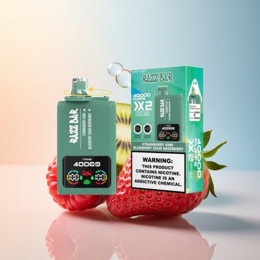 Razz Bar 40000 Puffs فراولة كيوي – توت أزرق توت حامض بنسبة 2% نيكوتين وشاشة عرض و650 مللي أمبير